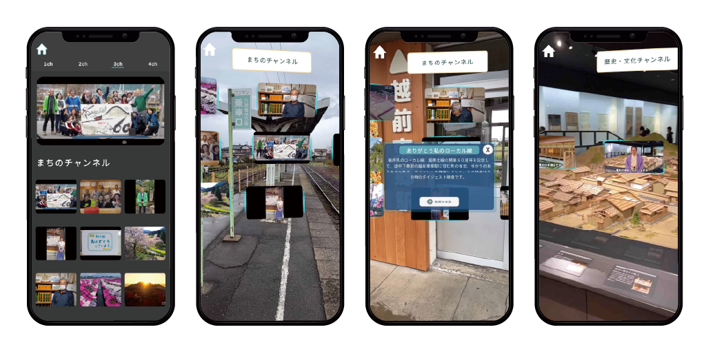 「みんなのAR-TV」は、地元ならではの情報満載。旅するエリアに合わせて短編動画が目の前に現れます。福井市内の様々なエリアで、その場所ならではの動画が提供されるので、旅がますます楽しくなります。