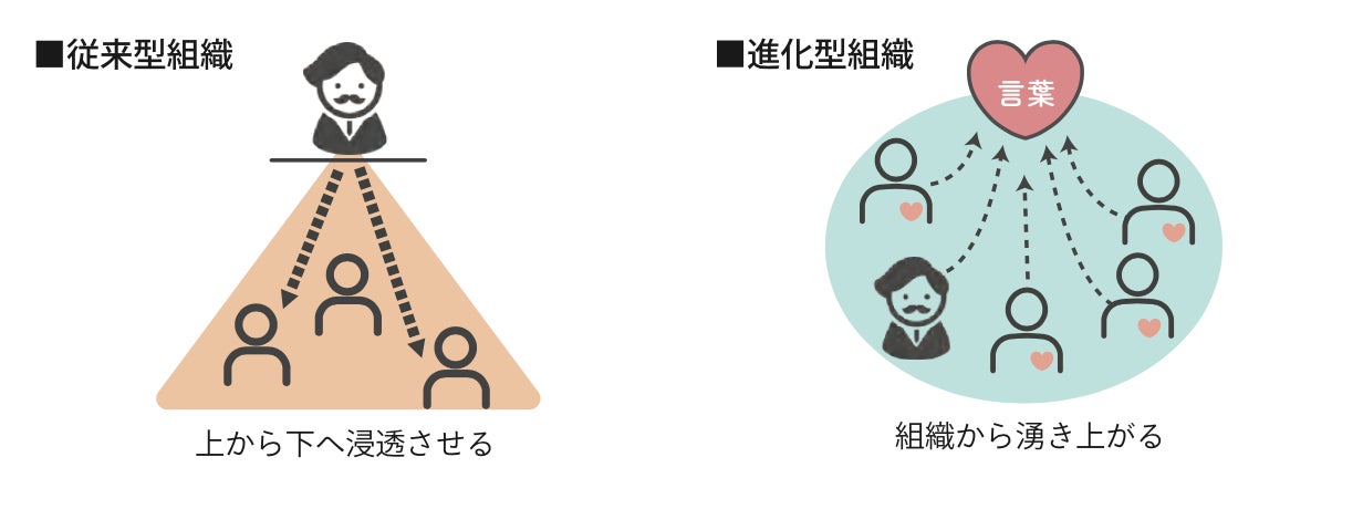 自律分散型組織への第一歩として、組織の存在意義を言語化します。対話を通して組織全体で言語化を行うため結果的に共同体感覚も醸成されます。