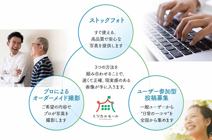 本サービスの最大の特徴は、ストックフォトに加え、全国の「ミツカルモール」会員ユーザーからのオーダーメイド収集にも対応している点です。これにより、既製素材では対応できないニーズに対しても、迅速かつ権利クリアな状態で対応可能な仕組みを整えています。