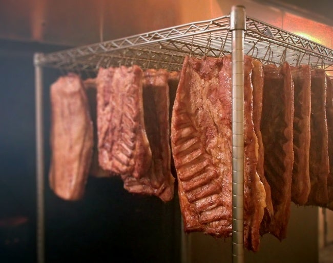 世に出回る数多くのハムやベーコンは「インジェクション(注入)」を行なって、2〜7日程度の塩漬(えんせき)を行い、電気やガス式の熱源でチップを燻す機械式のスモーカーで燻煙。10Kgの原料から15〜18Kgもの製品を作ることがハム業界の常識となっています。