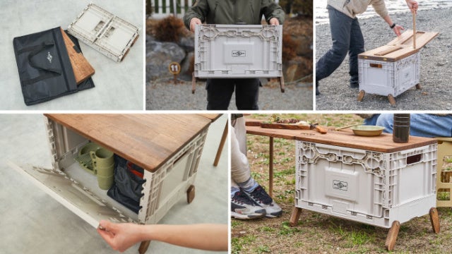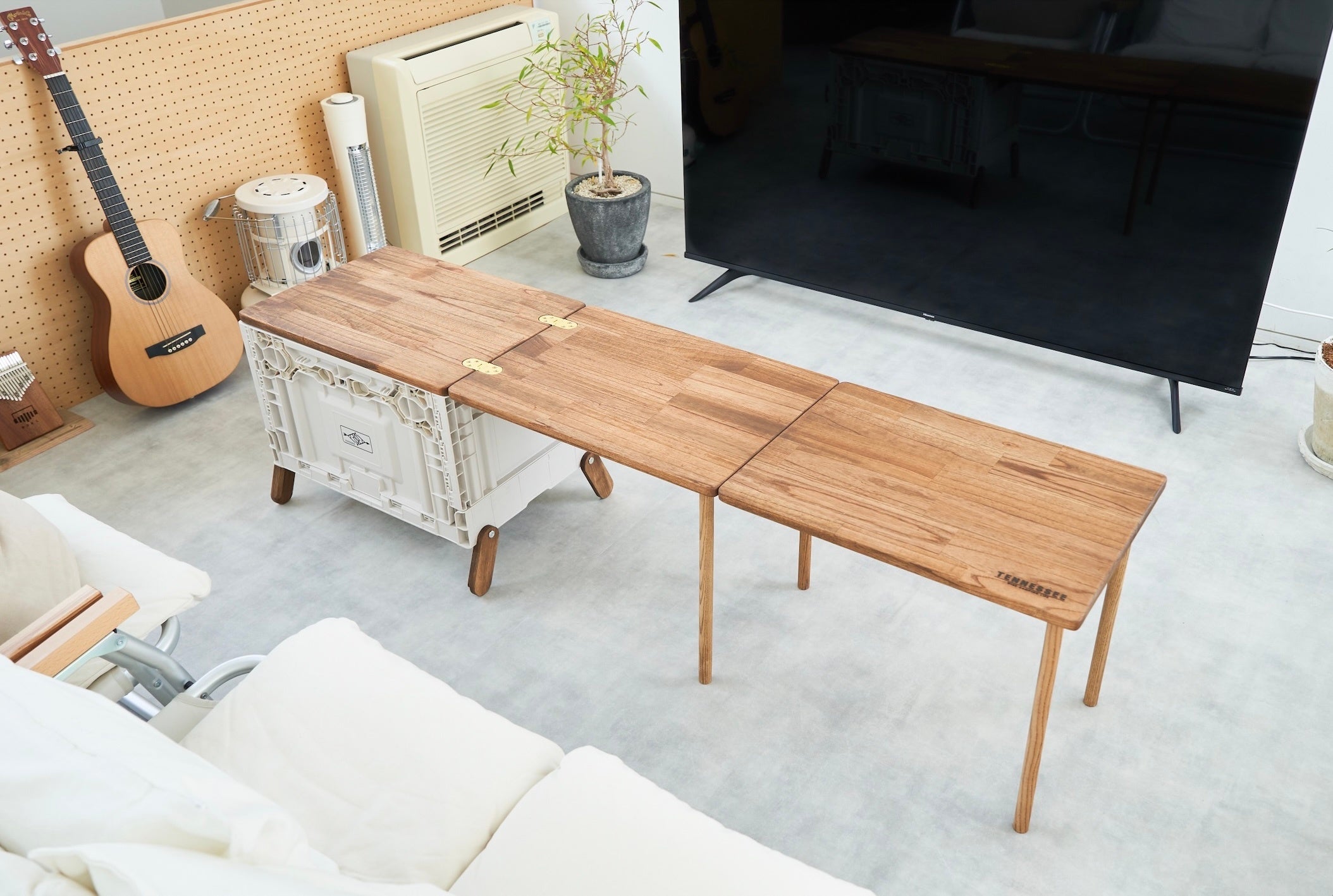 韓国のアウトドア商品メーカー『テネシーキャンピング』の折りたたみボックスを活用した3つ折テーブルが日本初上陸!