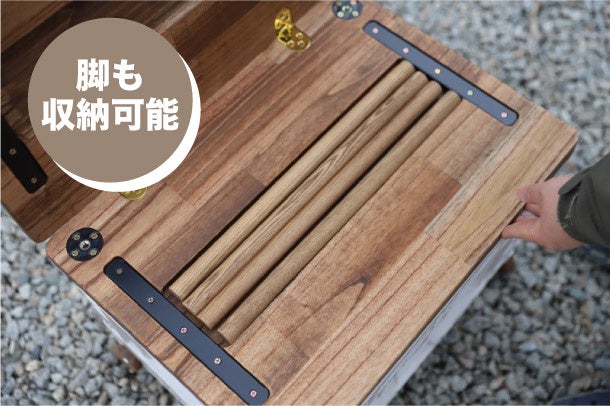 ③頑丈で耐久性に優れた櫟(クヌギ)を使ったハンドメイド品。コンパクトに折り畳んで持ち運びにも便利!