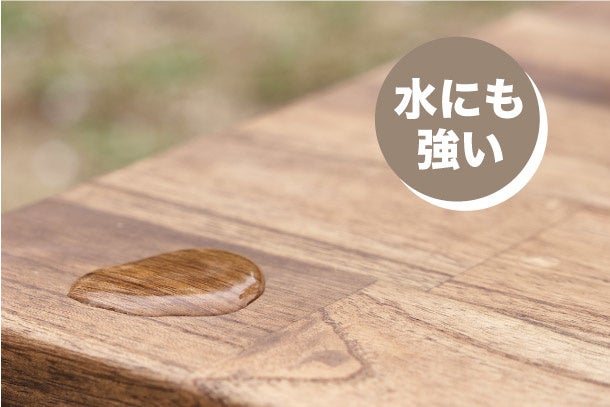 天板の素材には、頑丈で耐久性に優れた櫟(クヌギ)を使用しています。櫟は木目が美しく、加工品は手入れがしやすいことも特徴の一つです。製造工程の最後にUVコーティングを施しているため、水にも強いです。