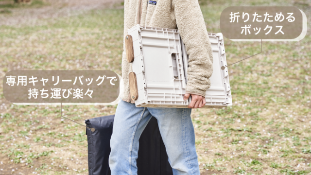 ①折りたたみボックスは収納するだけの道具じゃない。テーブルやシェルフにもなって可能性はどんどん広がる!
