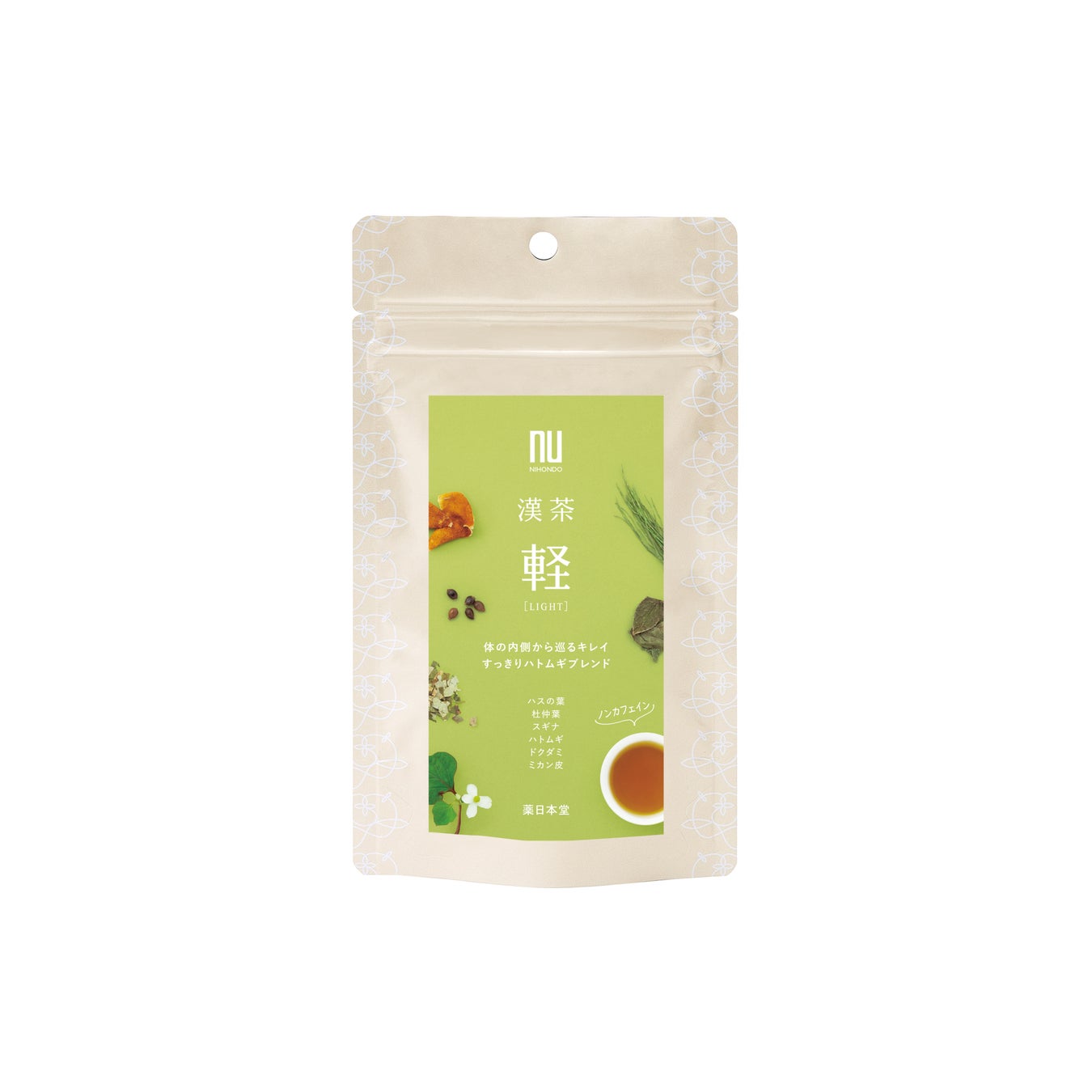<素材:ハトムギ、ドクダミ、ミカン皮、ハスの葉、杜仲葉、グアバ、スギナ>