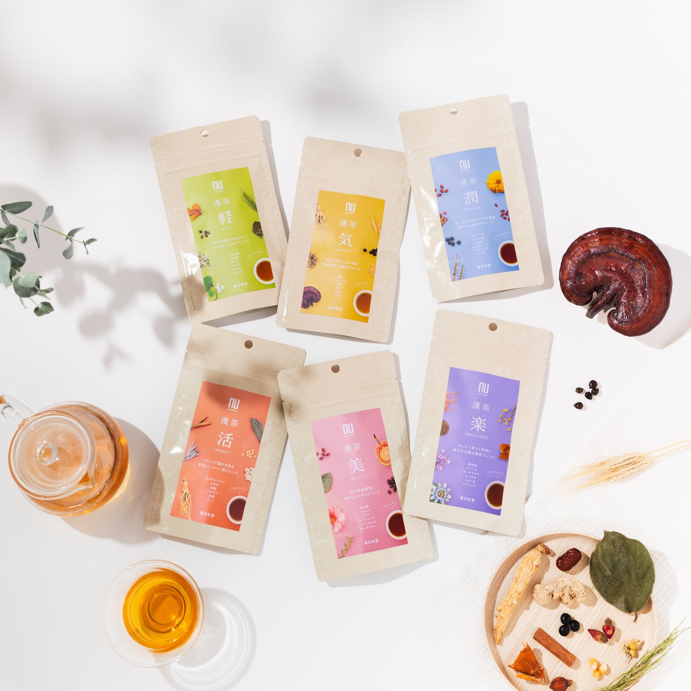パッケージデザインを刷新するとともに、薬膳の考えをもとに配合素材を見直し、毎日のお茶として続けやすい風味を追求。日々変化するからだのコンディションや季節、1日の時間帯に合わせて自由に選べる、ノンカフェインの和漢茶シリーズです。