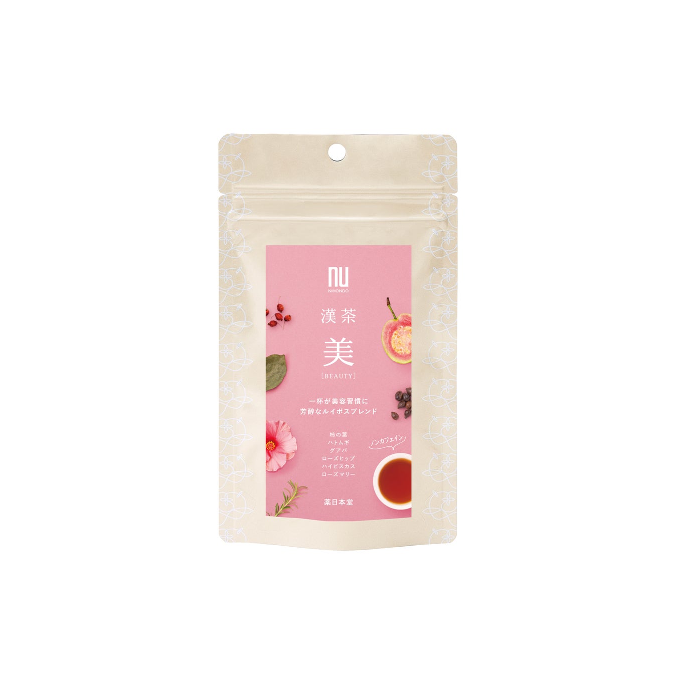 <素材:ルイボス、ローズヒップ、ハトムギ、柿の葉、ハイビスカス、ローズマリー、グアバ>