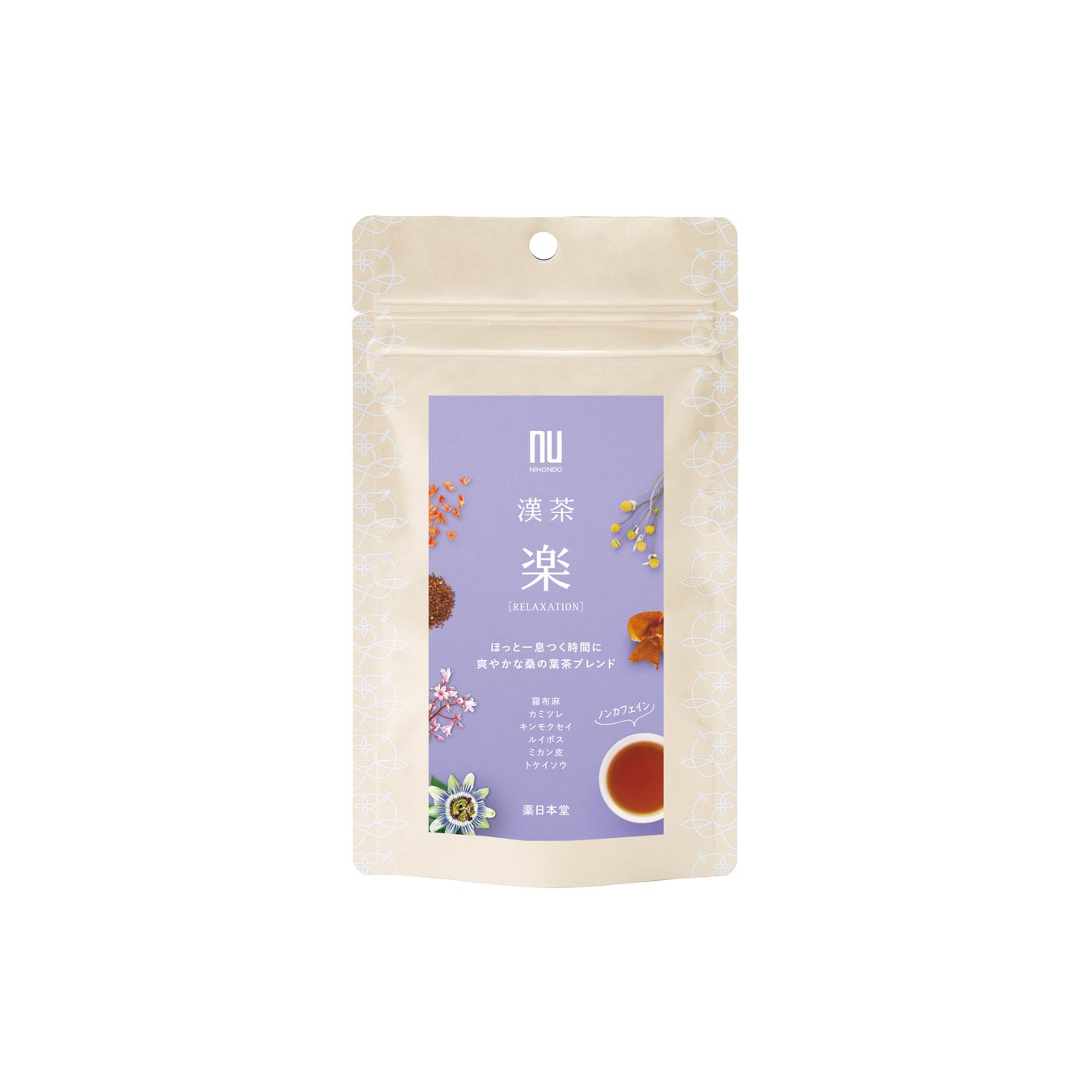 東洋素材の羅布麻やみかんの果皮を配合し、全体のバランスを整えました。数種類の茶葉が織りなす深い味わいと、カミツレやキンモクセイの華やかな香りでリフレッシュ&リラックス時間をサポート。