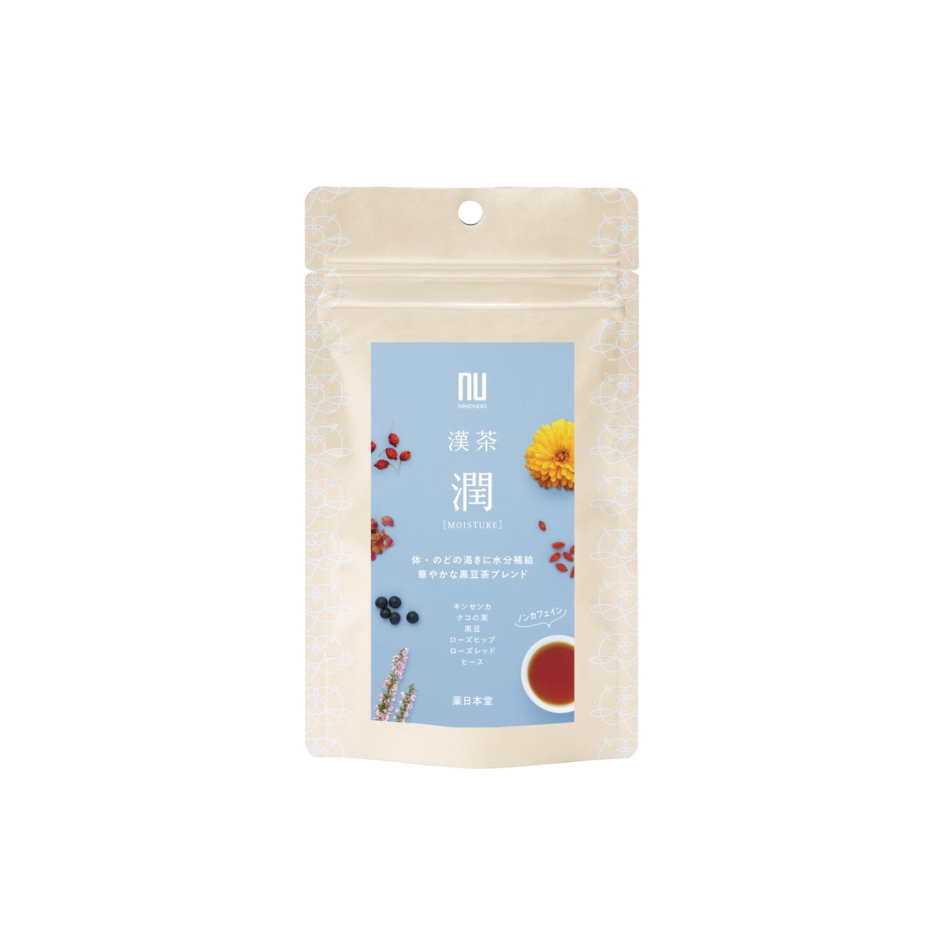 <素材:黒豆、ローズヒップ、ローズレッド、クコの実、ヒース、キンセンカ>