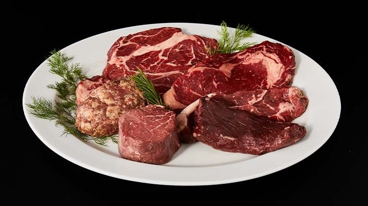 キャッシュバレーの標高は約1,500m。夏と冬の寒暖差が40~50℃もあるこの地の牧草は、平均値より約20%も糖分が高く、肉牛や乳牛の飼育に最適と言われています。ここで育てられる牛は、生後24ヶ月までこの草を食べて育ち(グラスフェッド)、その後2〜3ヶ月は完全オーガニックの穀物飼料で良質な脂肪分を蓄えます(グレインフェッド)。これによって、適度なサシが入った上質な赤身肉が生まれるのです。また、より安全な食肉を提供するために、アメリカで使用が許可されている6種類の成長ホルモンは敢えて一切使用していません(ホルモンフリー)。自然の恵みを受けてのびのびと育った牛が、私たちの自慢です。