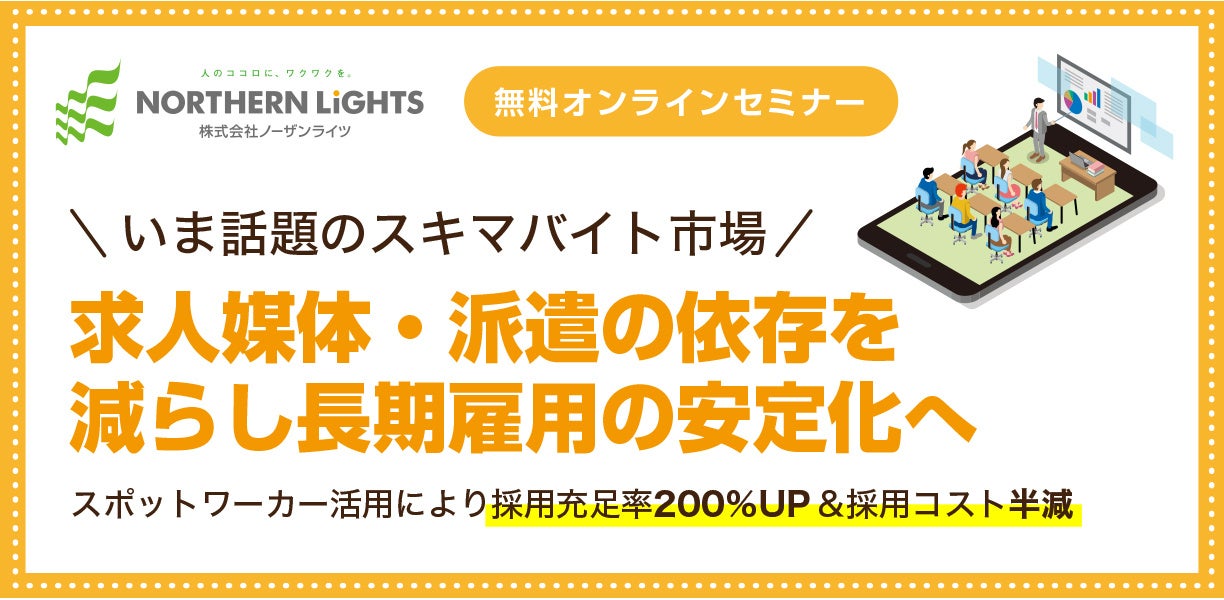 【アルバイト・パート採用担当者様必見】無料オンラインセミナー『スポットワーカー活用により採用充足率200%UP&採用コスト半減を実現!』
