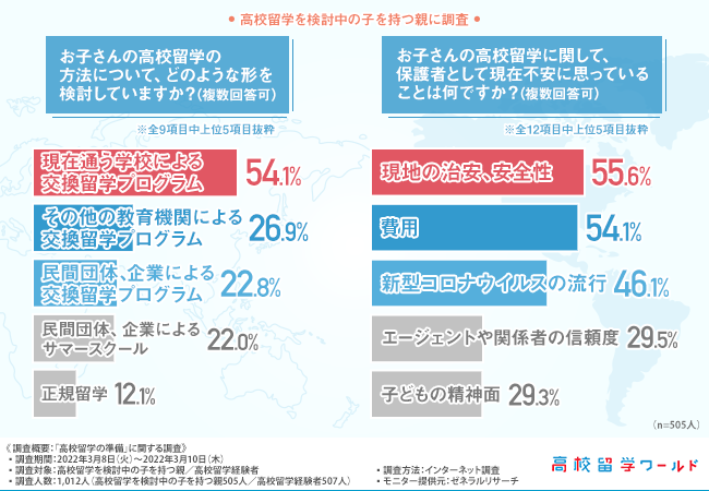 【調査人数】1,012人(高校留学を検討中の子を持つ親505人/高校留学経験者507人)