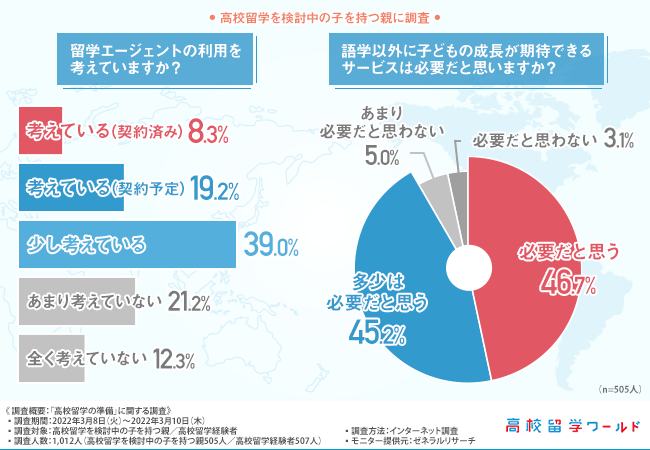 高校留学を検討中の子を持つ親の6割以上が『留学エージェント』の利用を検討している!