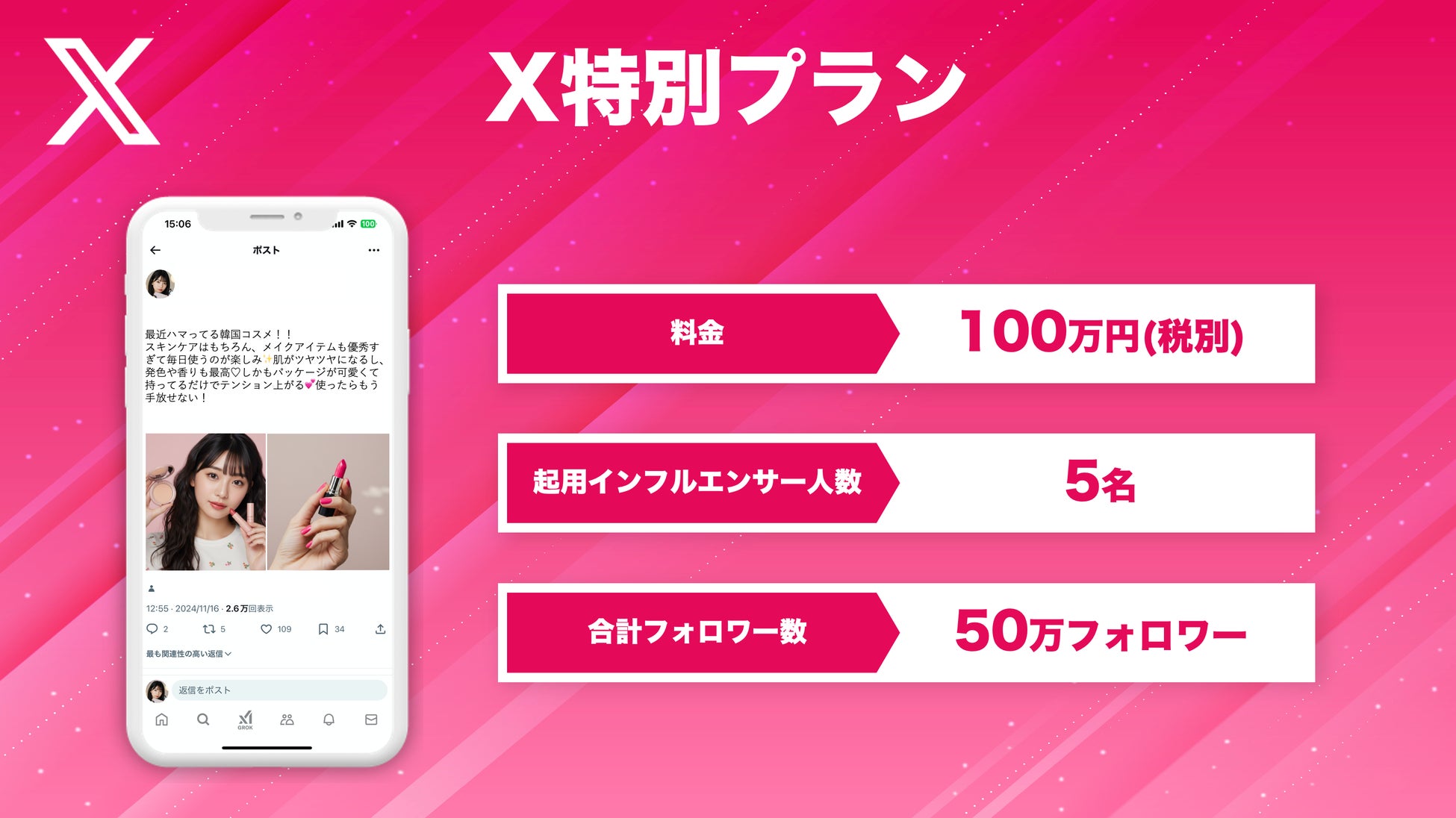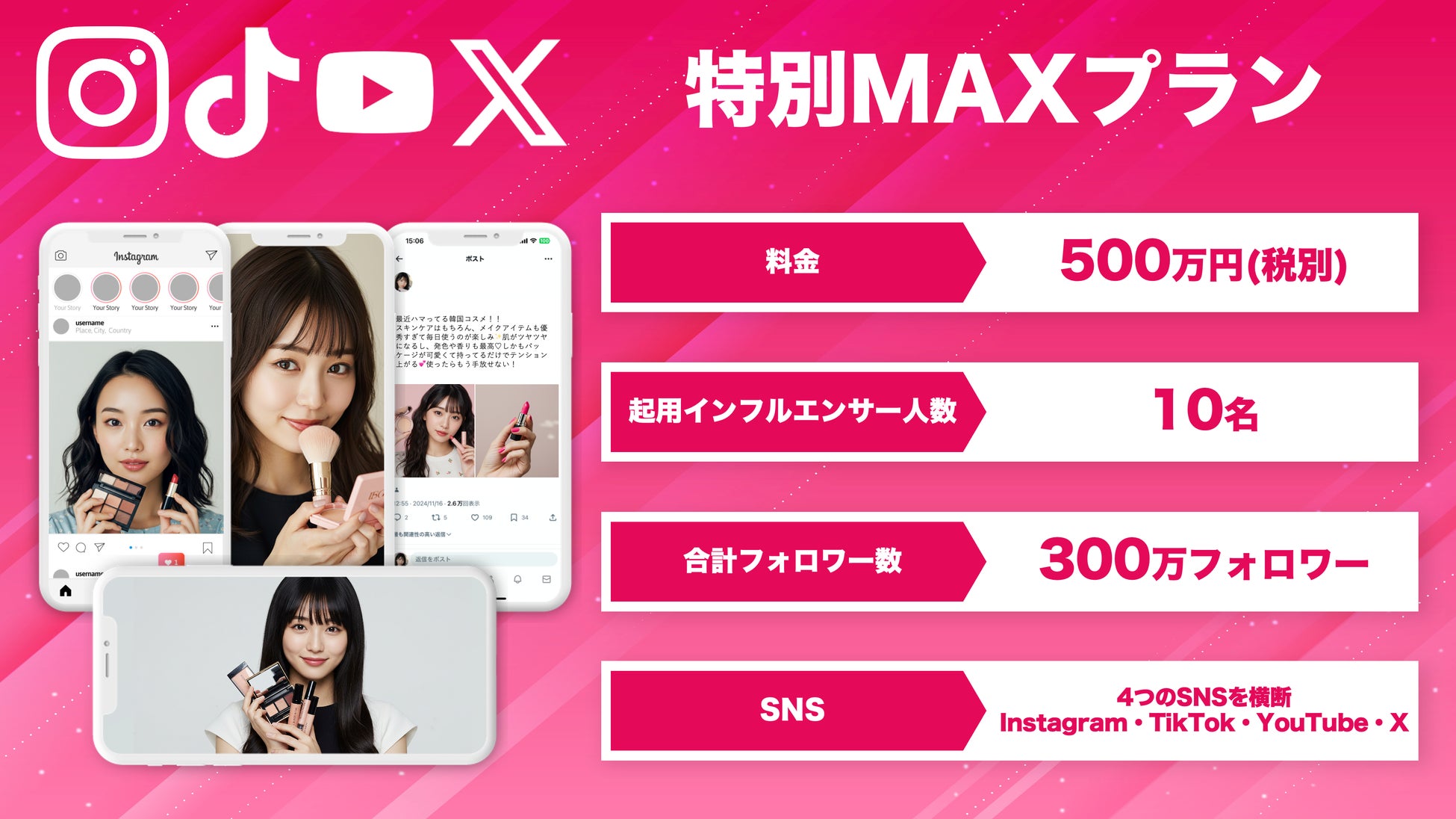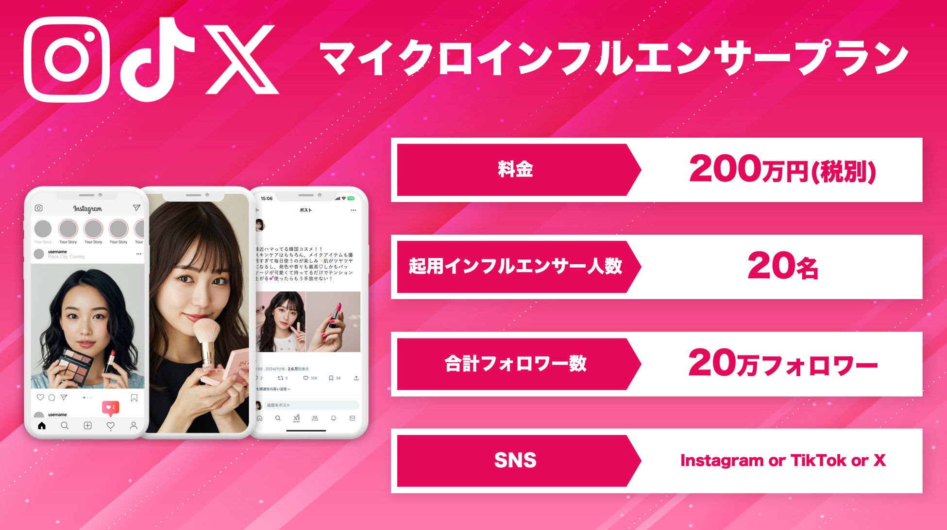 韓国コスメインフルエンサーマーケティングメニューの開始に際して、特別プランを提供します。