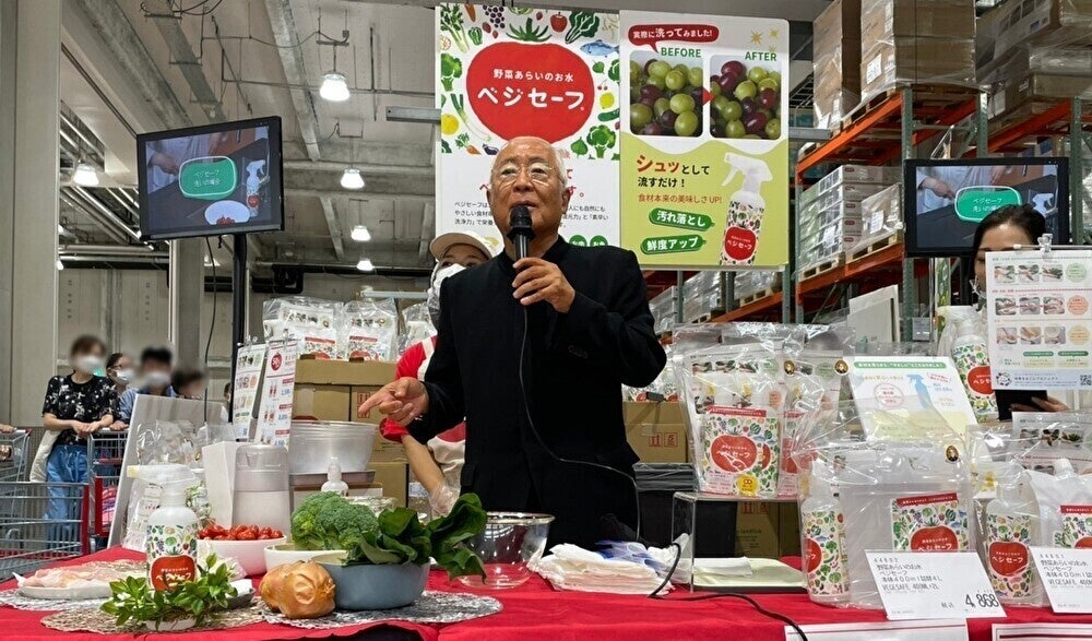 服部幸應先生が登場!野菜あらいのお水「ベジセーフ」、コストコ「川崎倉庫店」でロードショー開催。食材を皮ごと食べる美味しさや価値をお伝えする特別企画を実施。