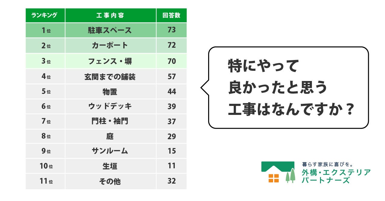 ◆特にやって良かった工事は駐車スペース・塀がダントツ