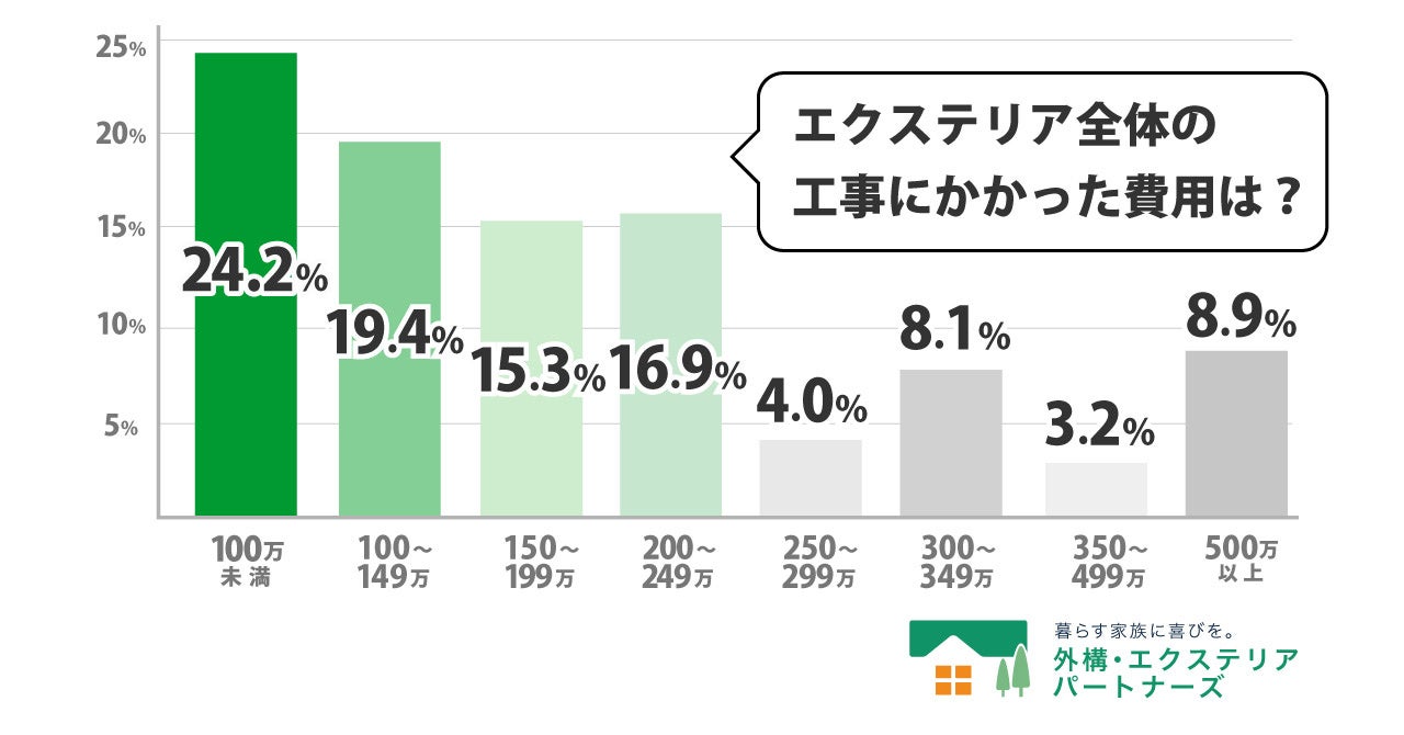 【調査結果】外構・エクステリア工事の費用はいくらかかった?一番多い価格帯は「100万円」以下
