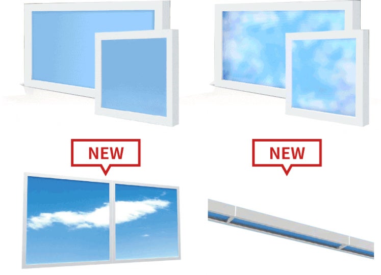 また、同日4/1(金)よりこれまでの2タイプに加え、新たにデジタルで雲の動きを再現でき現行機種の2倍のサイズである1200×1200mmの大型タイプ「DCloud」と、斜めに差しこむ陽の光を再現できる細身の1500×300mmの汎用タイプ「HASU」が新登場。よりお客様のニーズにお応えできる体感型照明となりました。