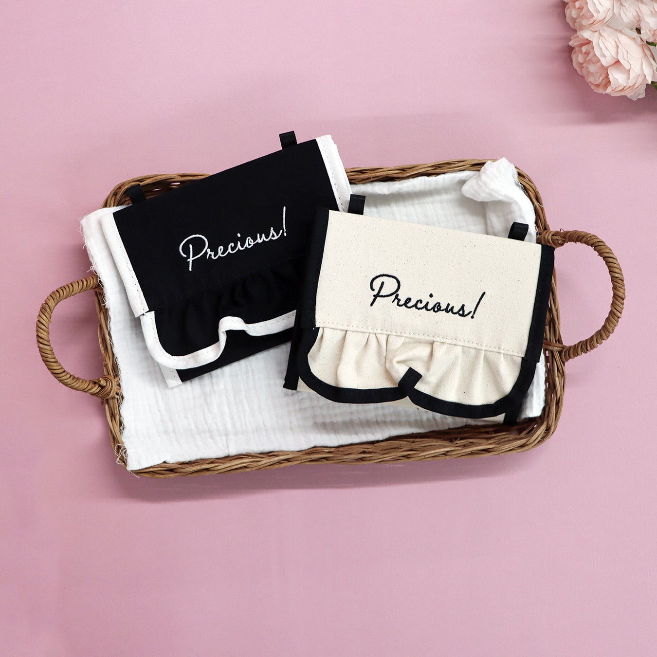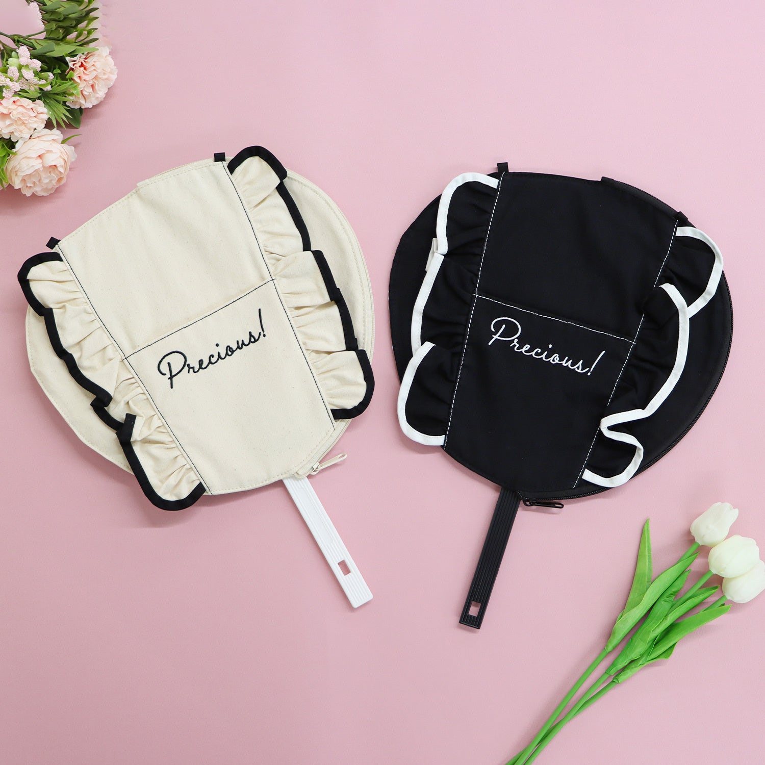 アクリルスタンドやブロマイド等が入る推し活用ケース。立体感のあるフリルにパイピングがアクセントになったデザインです。推し活グッズをまとめて持ち運びできるほか、カフェやお店でサッと広げて撮影することが可能です。シンプルなデザインのため、周りの目を気にせず撮影できます。