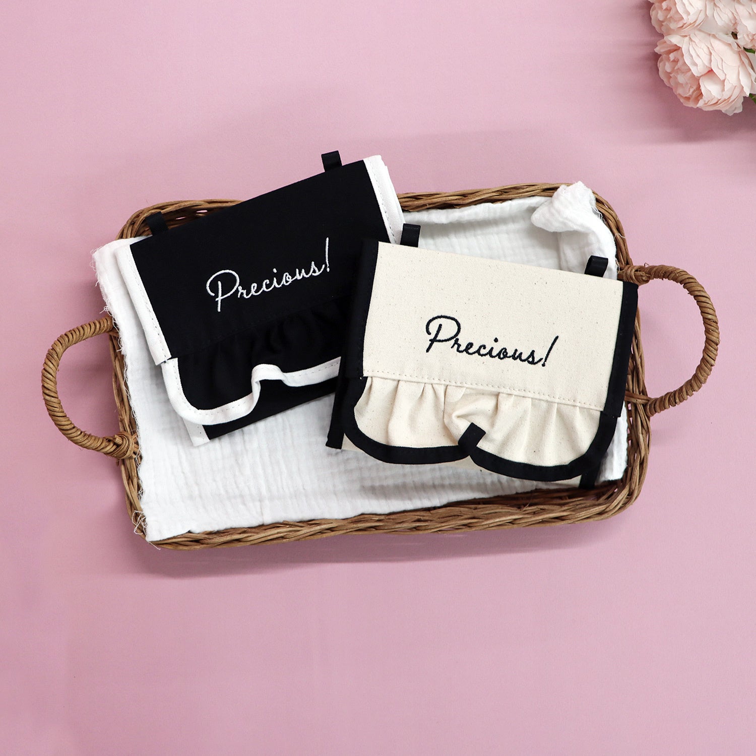 応援うちわを可愛く持ち運べるうちわカバー。立体感のあるフリルにパイピングがアクセントになったデザイン。シンプルなワンポイントロゴ刺繍が特徴です。別売りの「マルチストラップ」を付けてななめ掛けすれば、大切な推しの顔が逆さまにならずに、両手を開けた状態で持ち運び可能です。
