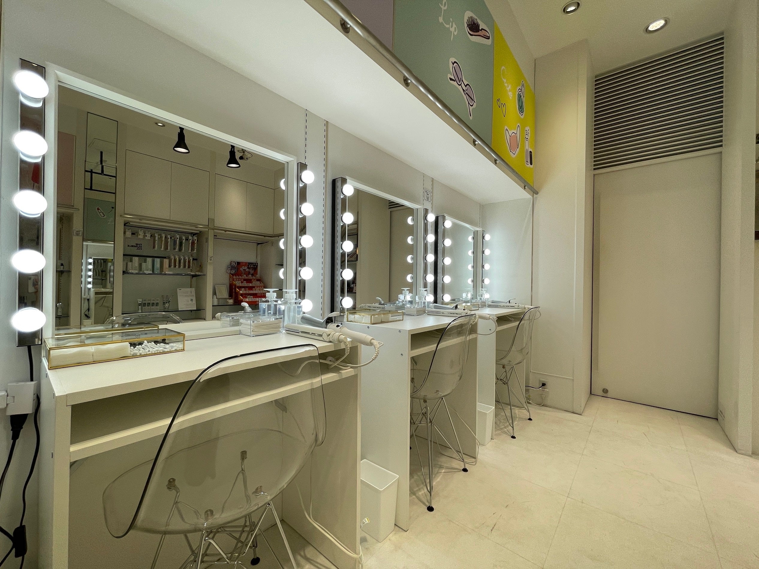 「one×one新宿ミロード店」には、2階にドレッサーが完備されています。本イベント期間中も常時設置。ヘアアイロンやコットン等もご自由にご使用いただけます。推しのイベントに向かう前に整えていきたい!というニーズに応えます。ぜひご活用ください。