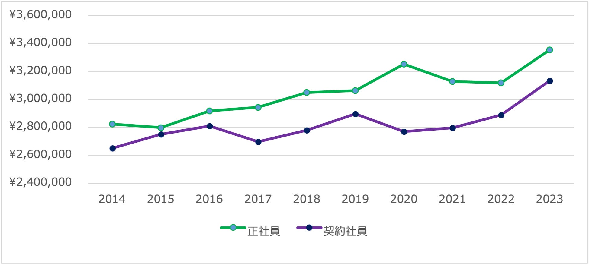 雇用形態別給与額推移:年収(正社員・契約社員)
