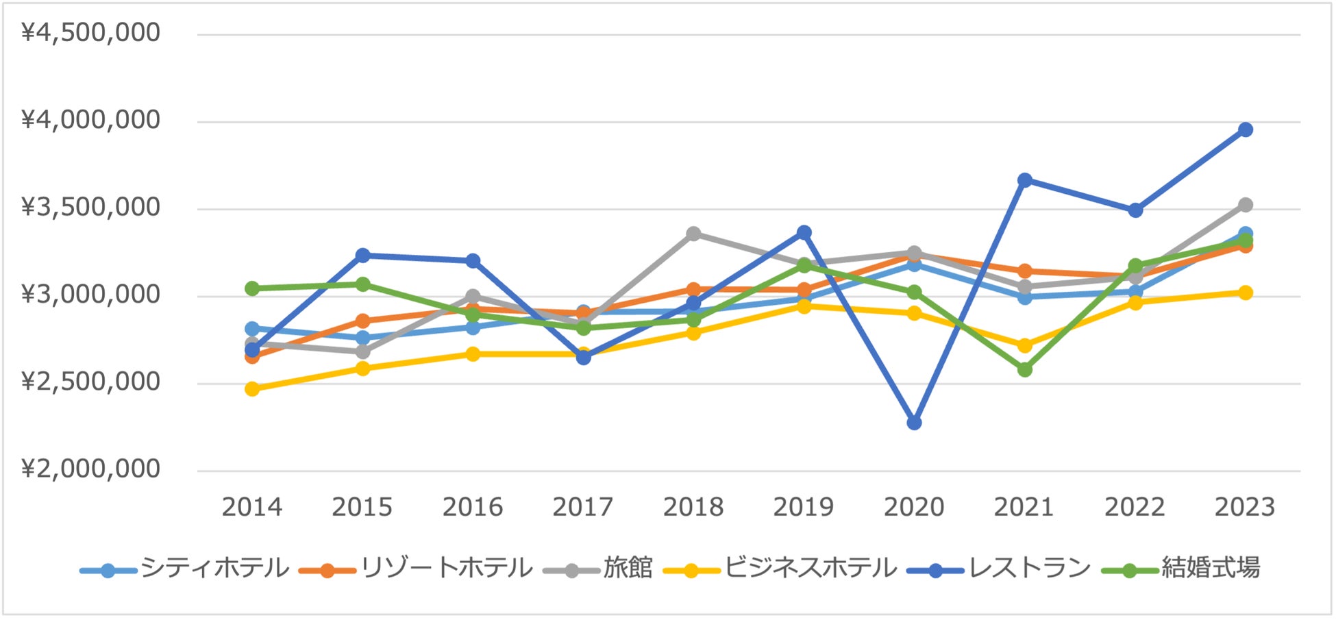 株式会社アイ・エヌ・ジー・エンタープライズ(本社:東京都新宿区、代表取締役:橋本 伸)は、運営するホテル・旅館などホスピタリティ業界に特化した求人情報サイト「ホテル求人ドットコム」(https://www.hotelkyujin.com) で集まったデータを活用し、2014年1月〜2023年12月の10年間で採用された8,741件の採用時賃金の平均値の推移や施設カテゴリ別、職種別、男女別の採用市場レポートを発表します。