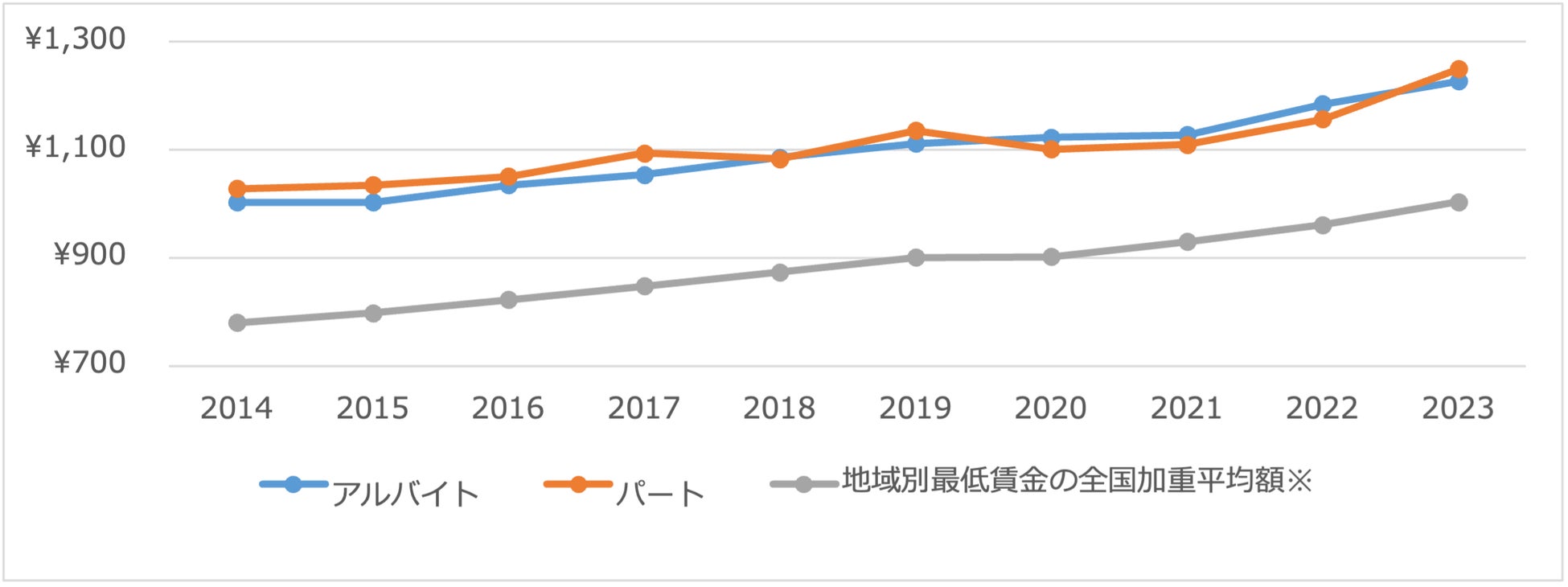 雇用形態別給与額推移:時給(アルバイト・パート採用)