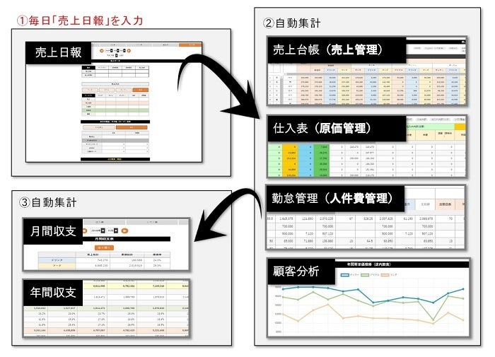 - 日々の損益が明確になり、経費の削減、利益向上のノウハウが手に入る