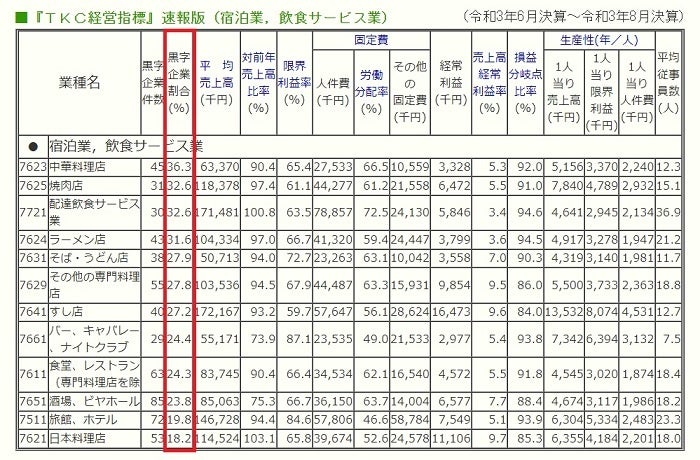 『TKC経営指標』速報版(宿泊業,飲食サービス業)
