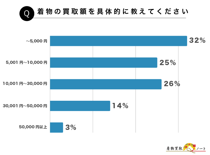 着物の買取額は質や枚数によって異なります。着物買取は査定のみでも申し込み可能ですが、5,000円ほどの買取額になった人も3割ほどいるため、その点は理解しておく必要があるでしょう。