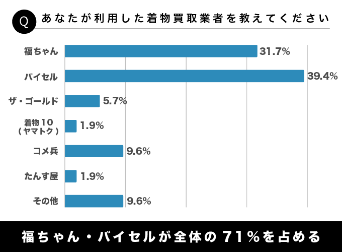 着物買取で利用した買取業者についてアンケートを取りました。