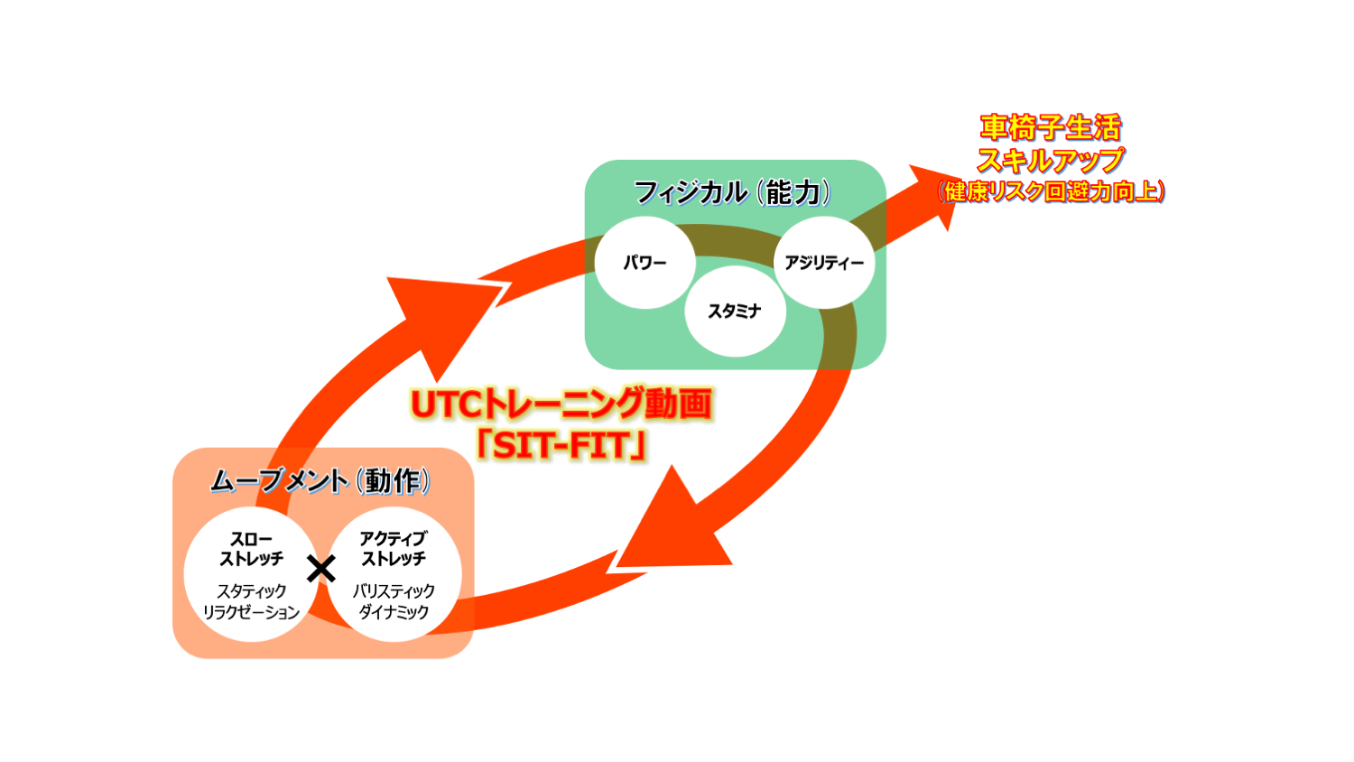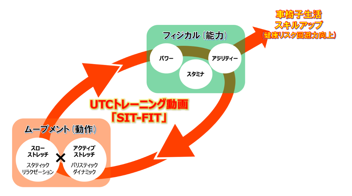 車椅子ユーザーの“生活スキル(健康リスク回避力)向上”をコンセプトに、ムーブメント(動作)・フィジカル(能力)両面をバランスよく強化することを基本理念としています。