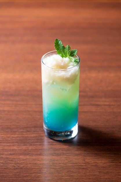 冷凍のライチピューレをそのまま使用し、ライチリキュール・ブルーキュラソーを合わせて晴れ渡った夏をイメージしました。