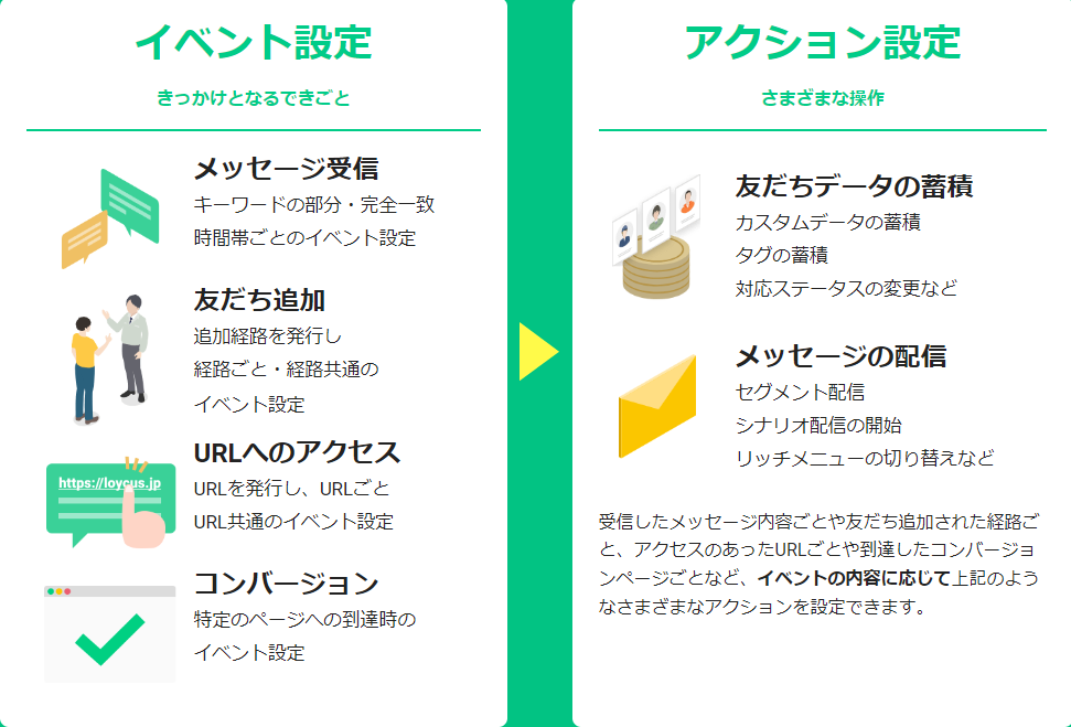 LOYCUSの活用で、LINEマーケティングの効果を高め「ロイヤルカスタマー」の育成を仕組み化し、加速させる事が可能です。