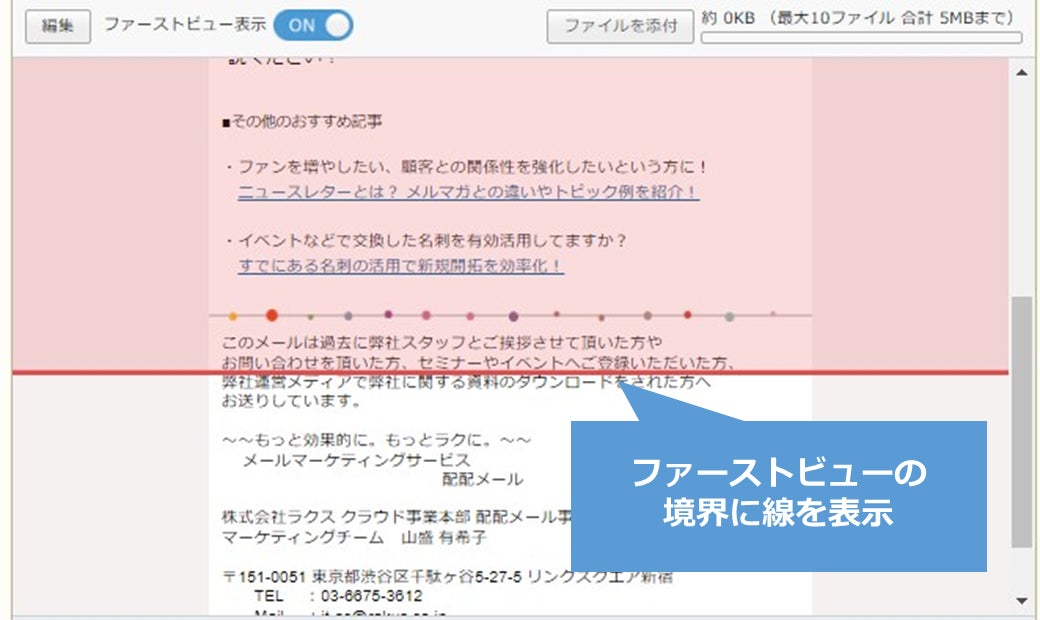 しかし、今回のバージョンアップでメール作成画面にてファーストビューの範囲を可視化できるようになりました。