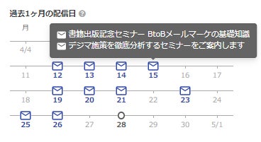 まずは自社がどのくらいの頻度で配信しているのか現状を把握するために、今回のバージョンアップで追加したカレンダーを役立てていただけます。
