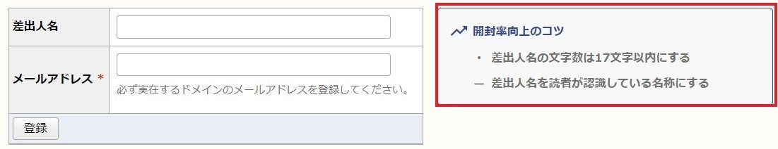 Fromアドレスを設定する画面では、そうした差出人名を設定する上で押さえておくべきコツを表示しています。