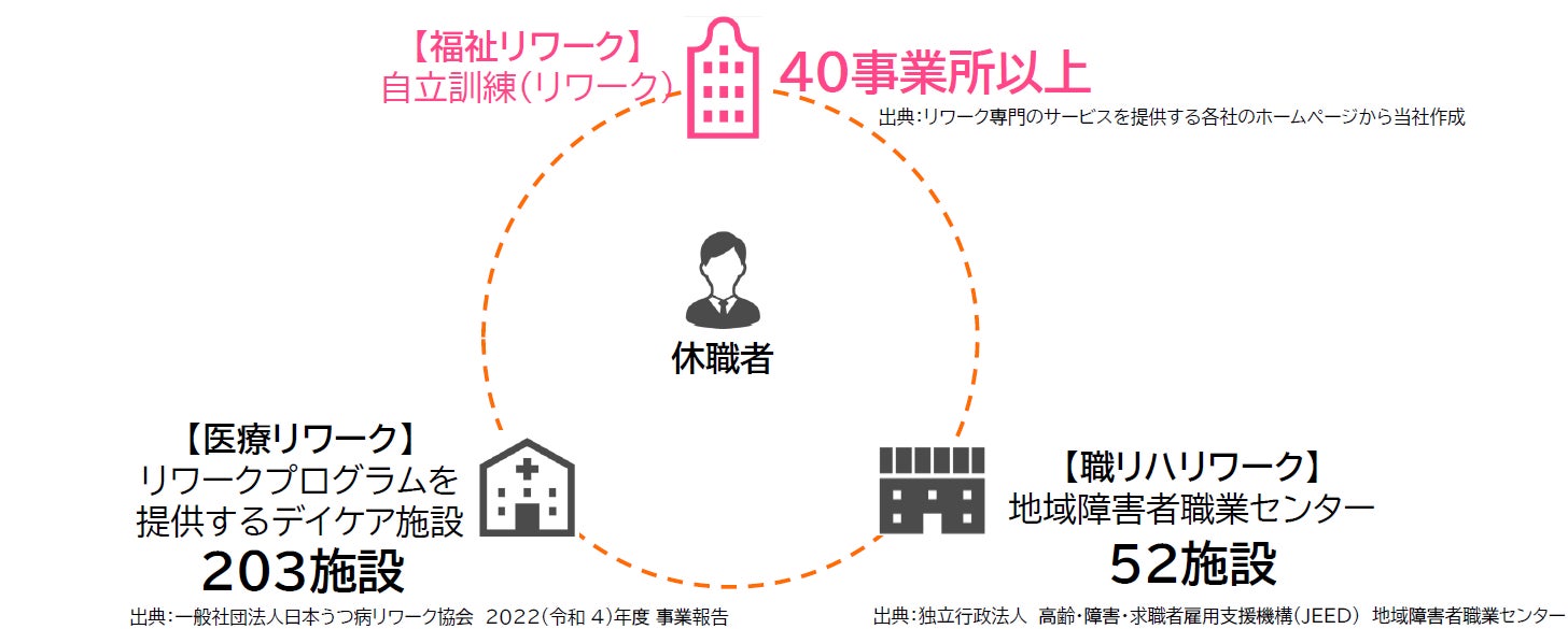 それに対して、休職者の職場復帰を支援する社会資源は、下図のように足りていないのが実情です。