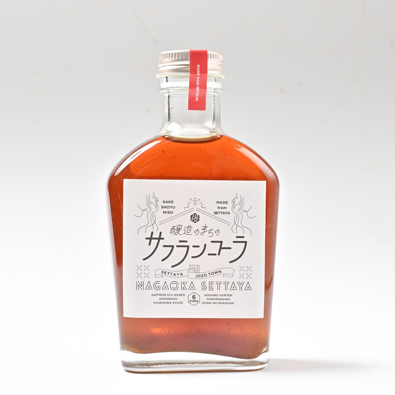 その昔、酒どころ・新潟で一世を風靡した薬用酒「サフラン酒」。昔ながらの製法を受け継ぎながら製造されている、新潟銘醸(摂田屋で創業)のサフラン酒をベースとしたクラフトコーラシロップです。サフラン酒独特の風味とコーラナッツや生姜のスパイスが香る、ドリンクはもちろんお料理にも使えるアイテムです。