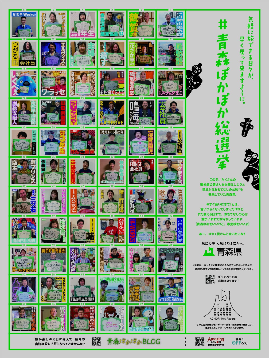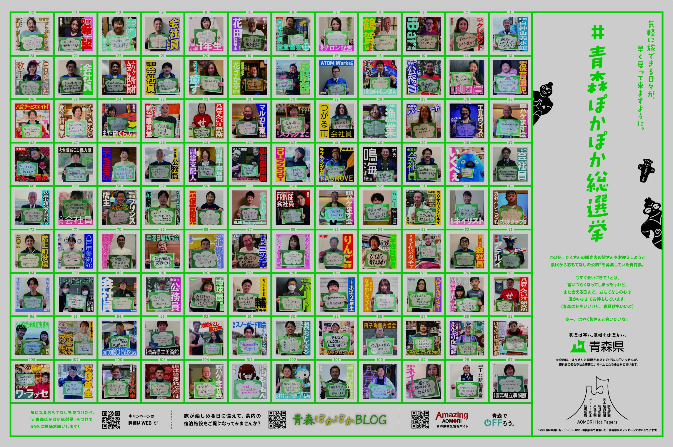 青森県は、気温は寒い。だけど…県民の気持ちは温かい。青森県108名のバラエティに富んだ“おもてなし公約”を大公開‼︎「#青森ぽかぽか総選挙」全国紙公開