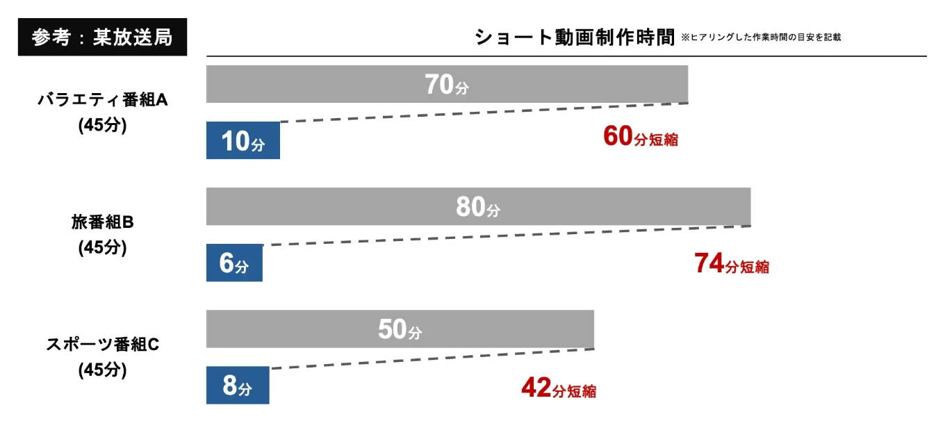 「Short Video Generator」は、放送局やメディア企業での導入・活用が進んでおり、ショート動画制作にかかる編集時間を最大約90%削減した実績があります。