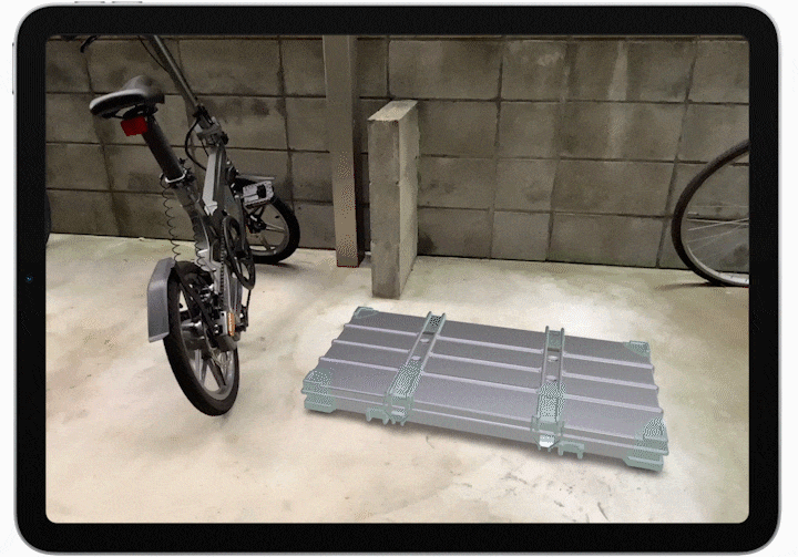 ・プロジェクト第2弾となる今回、折りたたみ式国産アルミコンテナAFC-106のサイズ感とともに、可変機構をARでも再現。