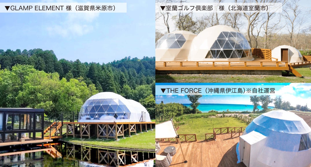 グランピングジャパンのドームテントは2017 年より導入を開始。国内シェアNo.1、導入実績全国70 か所以上、