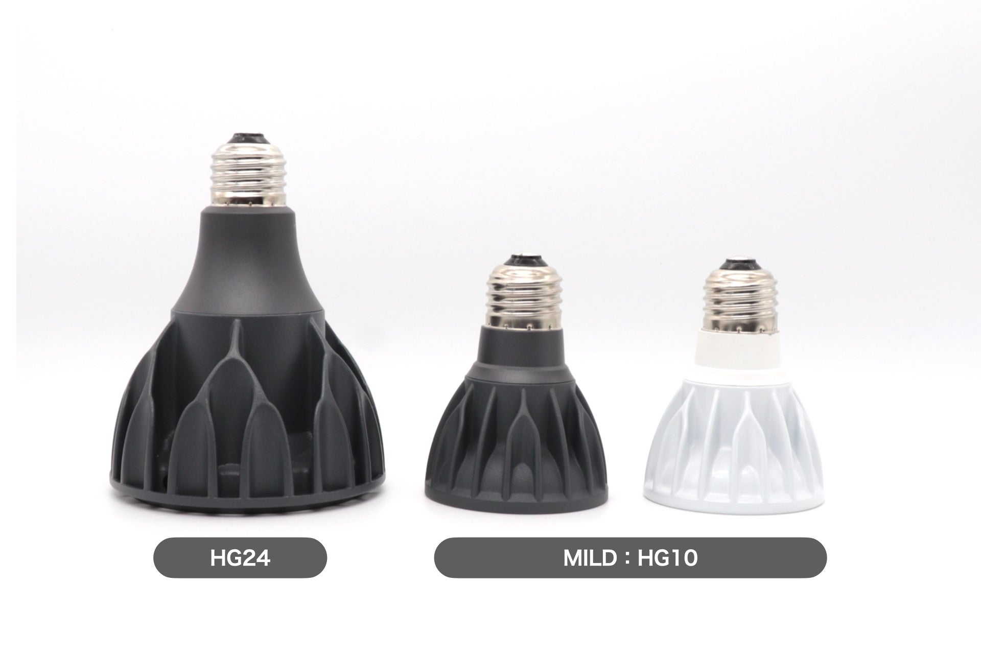 農業分野の技術で開発した植物育成ライト Helios Green LED(ヘリオスグリーンLED)は、太陽に限りなく近い強い光で農作物などの植物育成等に多く使用されている植物育成ライトです。従来の植物育成ライトは、主に「波長と明るさ」が重視されていましたが、Helios Green LEDは植物にとって最も大切な光合成の促進に着目して開発されました。近年の観葉植物ブームにより室内に植物を取り入れるユーザーが増えている中、日光不足により枯れてしまったり、徒長(※1)してしまうというお声に対して、お求めやすい価格と扱いやすい低出力・小型の植物育成ライトの開発を進めてまいりました。Helios Green LED MILDは、植物の光合成をサポートするだけでなく、植物育成に苦手意識のある方が植物を健康に育て、園芸家としての一歩を踏み出すツールとしてご利用いただける製品です。農業及び観葉植物向け製品である弊社のHelios Green LED HG24は消費電力が24wと高出力ですが、新発売のHelios Green LED MILDは消費電力10wと低出力化することで植物の光合成をやさしくサポートする仕様といたしました。低出力化したことにより、植物育成ライトを初めて使用される方でも強光による葉焼けのリスクを抑えながら安心して使用できるマイルドな植物育成ライトです。
