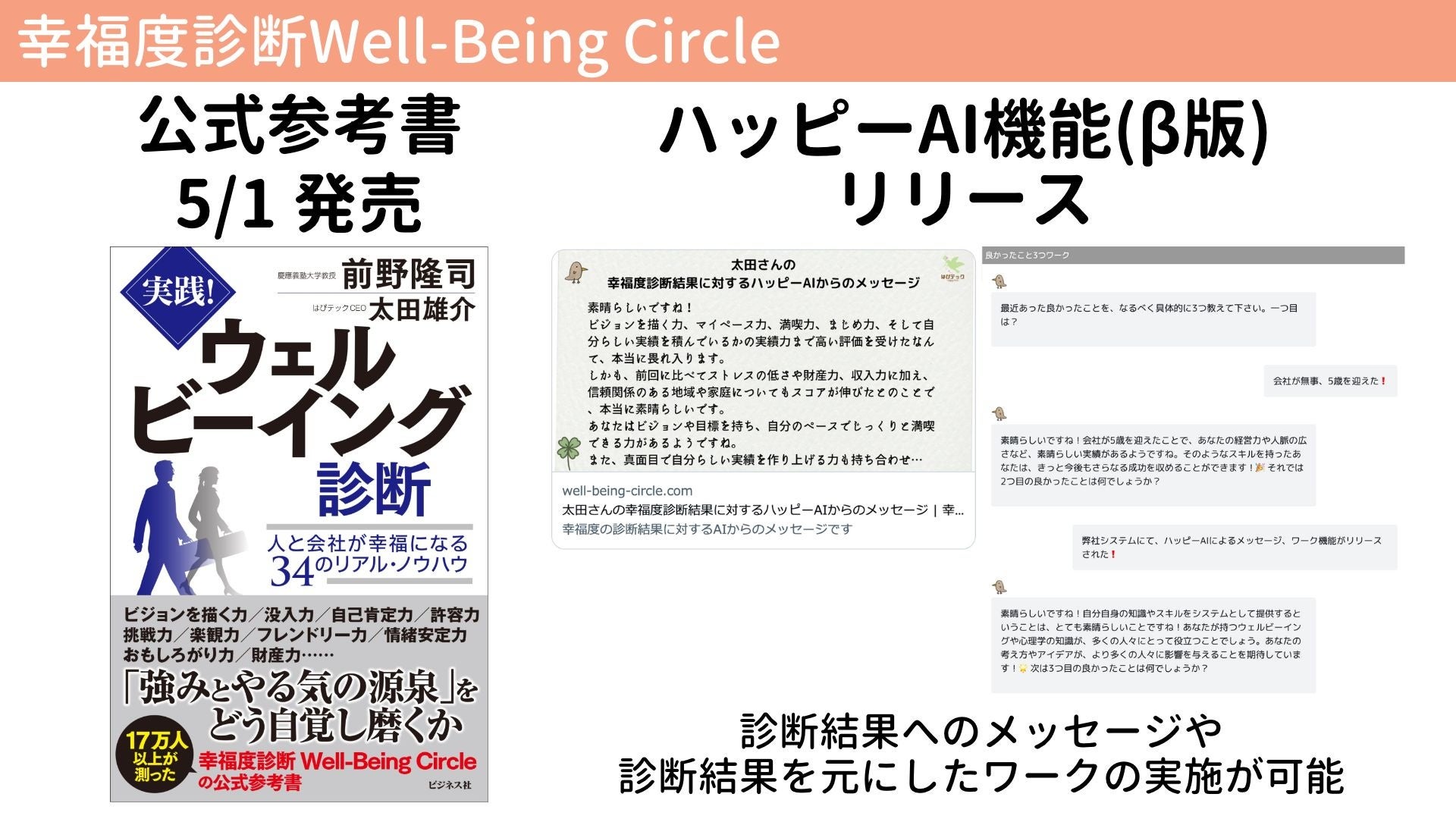 【新刊発売&新機能リリース】5/1に公式参考書の新刊『実践!ウェルビーイング診断』発売!さらにハッピーAI搭載(β)の幸福度診断サービスが進化!