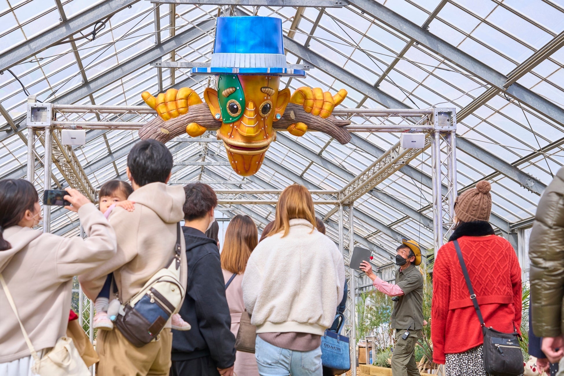 一般的ないちご温室は「苺の赤」と「葉の緑」の2色を基調とした風景が広がる所が多い中、「オズの魔法使い」の世界観をテーマにした本いちご狩り空間は、凝り性な発明家、「オズの魔法使い」のこだわりが随所にちりばめられています。頭上には「光を反射するアートのシャンデリアオブジェ」、いちごの周りには「カラフルなアートフラワー」が広がります。普段は入ることができないバラ園のバックヤードにある、オズの魔法使いが秘密にしていた「シークレットガーデン」感あふれるいちご園でいちご狩りが楽しめます。