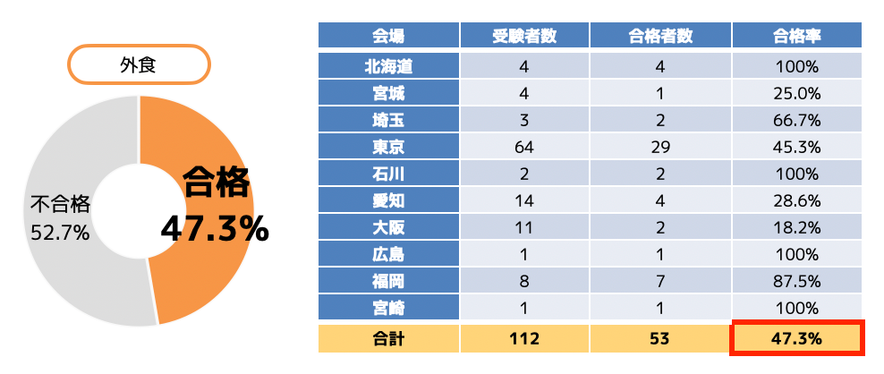 合格率(2024年度 外食業特定技能2号技能測定試験 第1回国内試験)