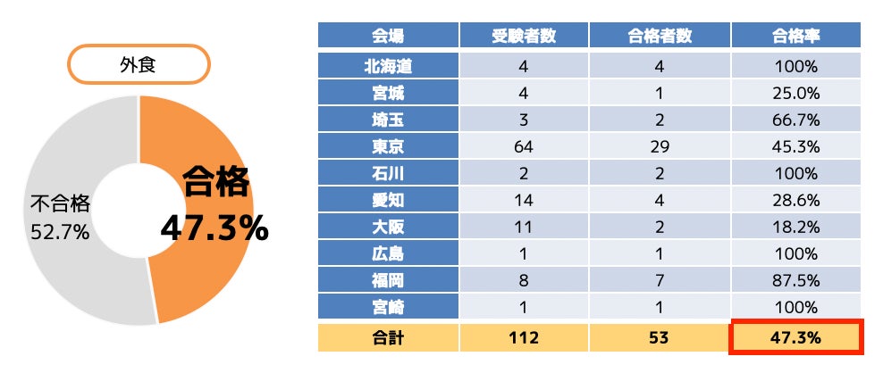 2024年5月〜6月に全国で実施された、『2024年度 外食業特定技能2号技能測定試験 第1回国内試験』の合格者は以下のとおりです。