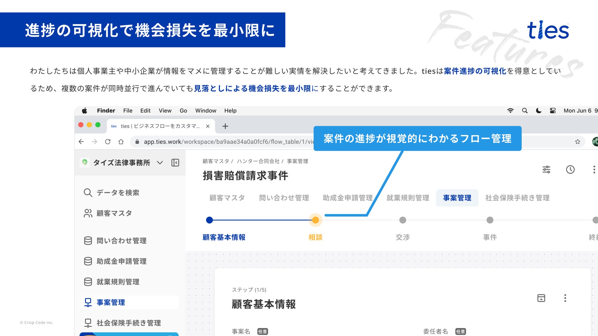 案件の進捗が一目でわかるカスタマイズ性に優れたCRM『ties (タイズ)』、正式ローンチのお知らせ